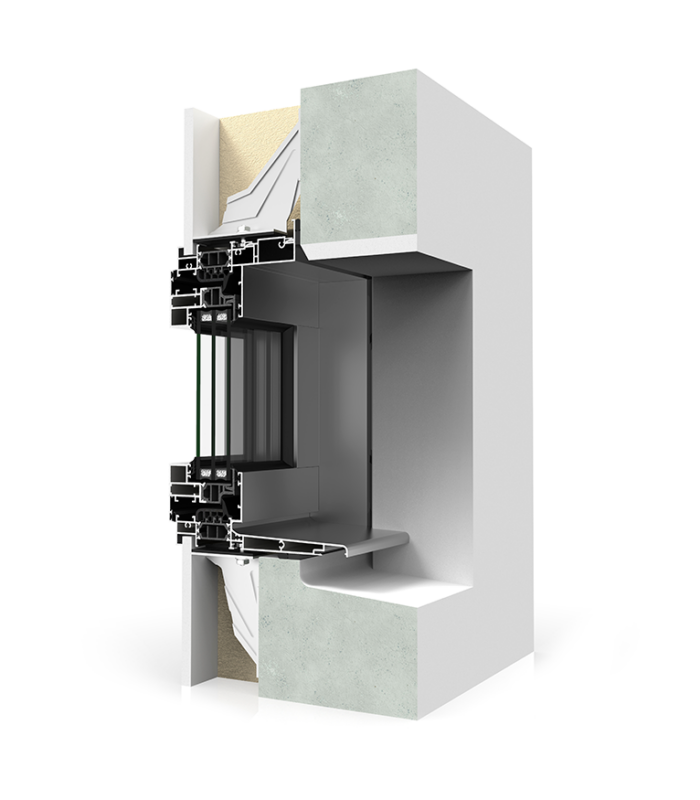 Hidden sash system oriented to the French market with monoblock frame that makes installation easier. Using this new frame allows faster fabrication and installation,avoiding overlaps, cills and any other complementary profiles, speeding up assembly and fitting. The fabricator can choose either straight or 45° cut.