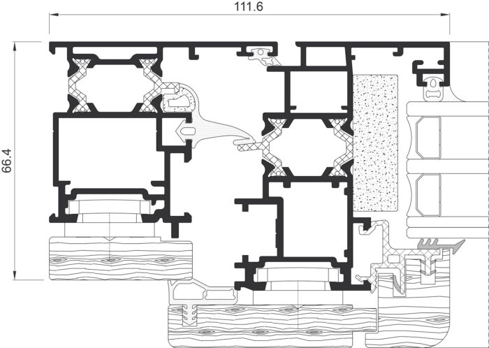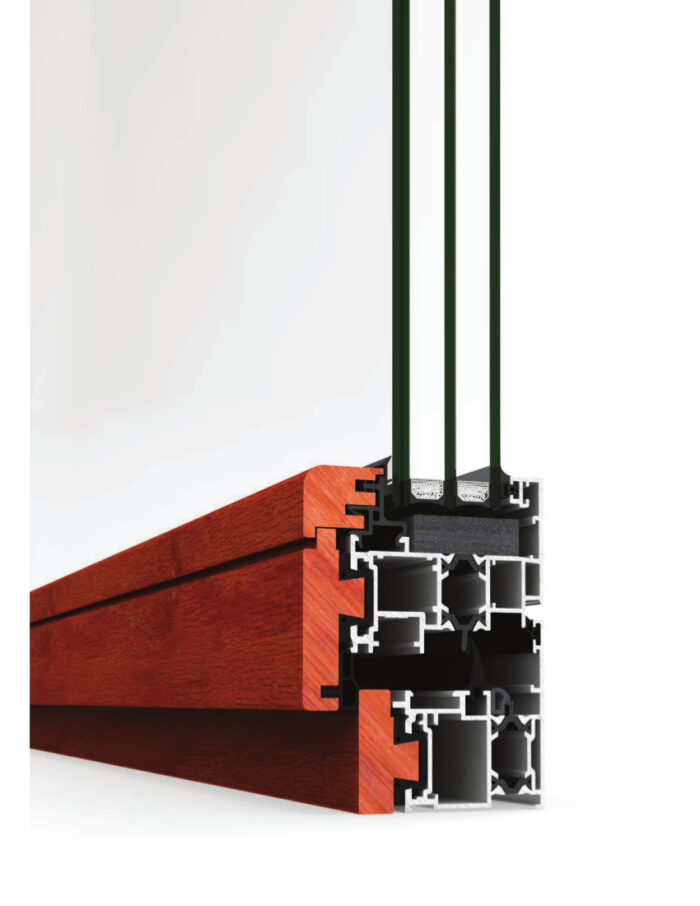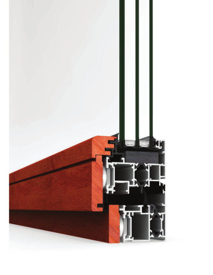 Thermally broken mixed system that combines an external aluminium profile and its excellent performance with the warmth and design that an internal timber profile provides.The extensive range of CORTIZO powder coating or anodising finishes, any of them may be selected for the surface treatment of the external face. On the other hand, the internal face is available in American oak, sapelly, mellis pine and other timber options available on request, all of them treated with a transparent, satin, dissolvent free ecological varnish.